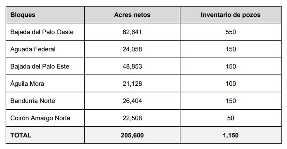 Los logros en el pozo BPE-2202h también permitieron reconfirmar la adición de 150 pozos al inventario de la compañía en Bajada del Palo Este, y también extender el modelo geológico a Coirón Amargo Norte, el cual es el bloque lindante al sur, cubriendo una superficie de 26.598 acres brutos.