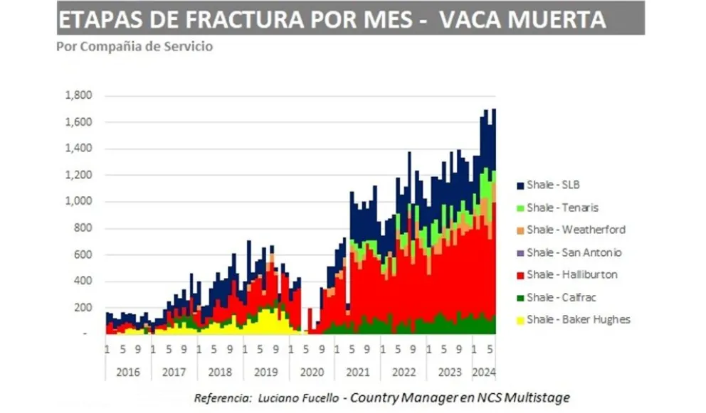 Chevron realizó en el sexto mes del año un total de 208 etapas de fractura, que fueron pedidas a Hallibuerton. La compañía estadounidense viene activando su concesión shale de El Trapial, su proyecto propio en Vaca Muerta además de ser socio clave de YPF en Loma Campana.
