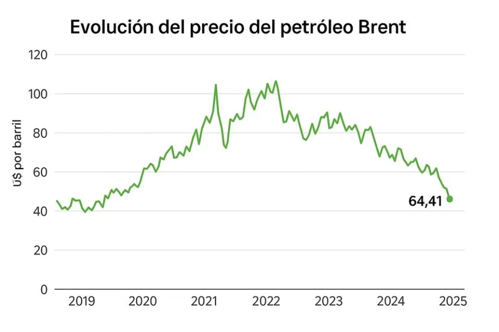 El precio del petróleo Brent cayó a su nivel más bajo desde 2021, situándose en torno a los u$s 64,41 por barril en la apertura de los mercados de este lunes, en un escenario marcado por las medidas que anunció el presidente de Estados Unidos, Donald Trump, el pasado 2 de abril de 2025.