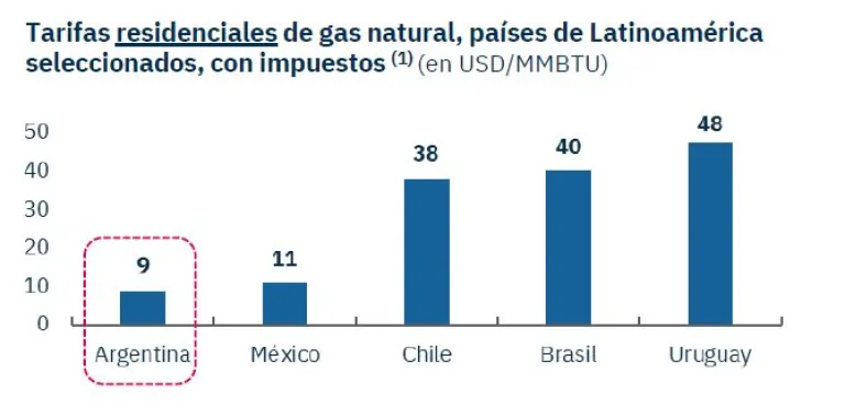 El estudio subraya que, a pesar de la recomposición registrada en los últimos años, las tarifas de gas natural en Argentina siguen entre las más bajas de América Latina. A nivel global, se ubican por debajo de las europeas, aunque por encima de las vigentes en países con alta producción de gas.