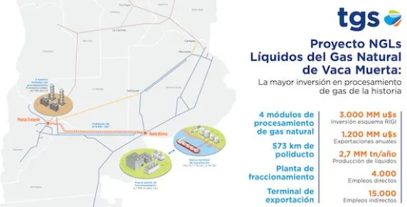 tgs anunció una inversión de US$ 3.000 millones para desarrollar el mayor proyecto de líquidos de Vaca Muerta